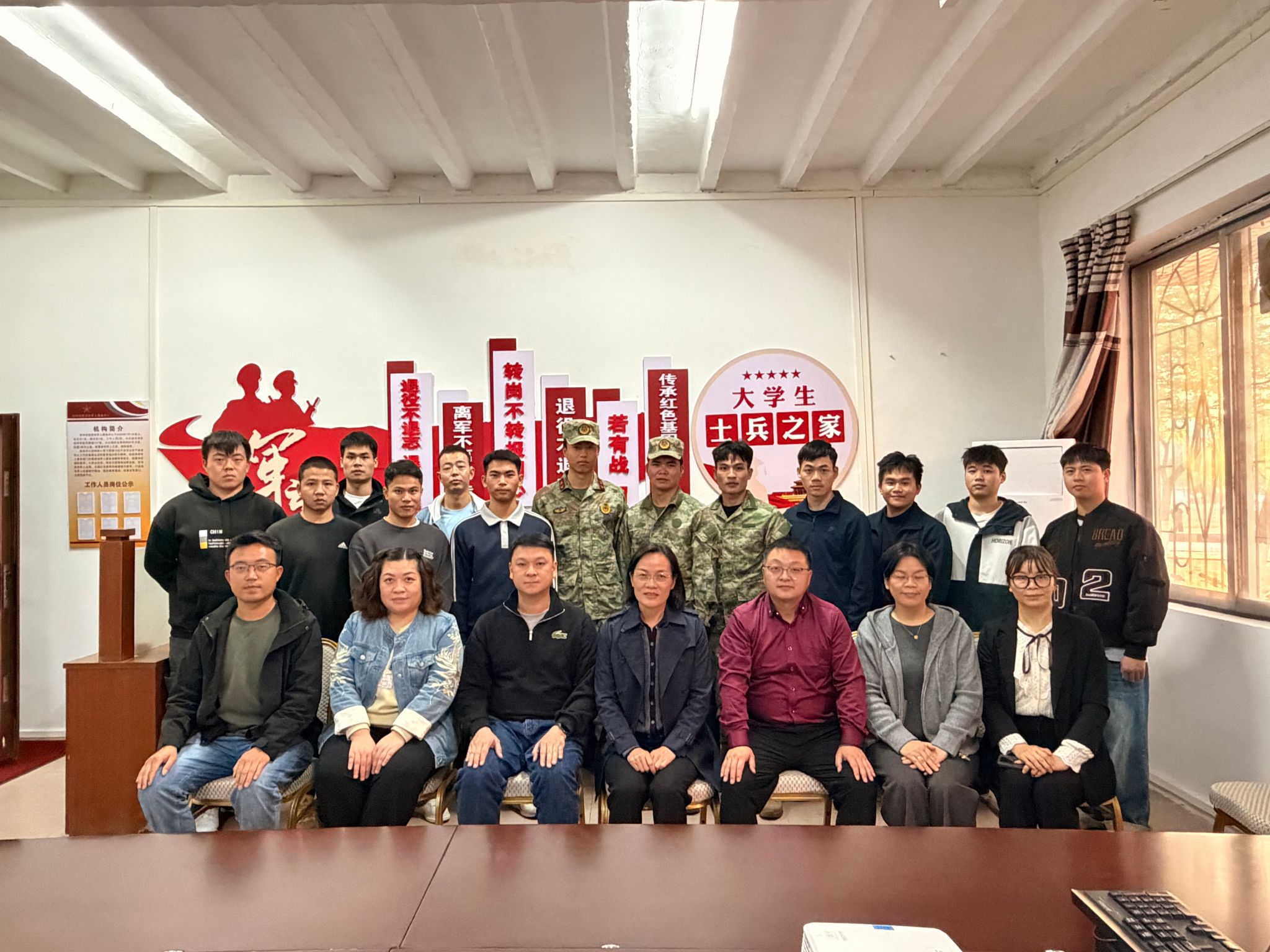 蒋奕寄语退伍大学生“退役不退志、退伍不褪色”,充分发挥“大学生”与“退役军人”的双重身份优势,始终坚守政治初心,在学习和生活中发挥先锋模范作用。她强调,武装部等相关职能部门要主动担当,加强协作,持续关注退伍大学生成长,健全服务管理机制,常态化开展精准帮扶,助力退伍大学生在校园中全面发展、成长成才,共同打造退伍大学生的“温暖之家”。